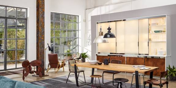Bei CABINET ist die langatmige Suche nach dem passenden Möbelstück vorbei. Dank ausdrucksstarker Materialien verbindet CABINET rohen Industrie-Charme mit kühler Eleganz und bietet seinen Kunden so eine einmalige Stilrichtung an.