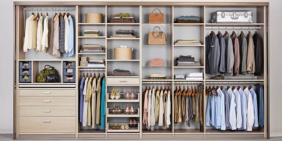 Dank eines ausziehbaren Fachbodens lassen sich Pullover und Hemden schnell und praktisch zusammenlegen. Wenn man ihn nicht braucht, verschwindet er im Schrank.