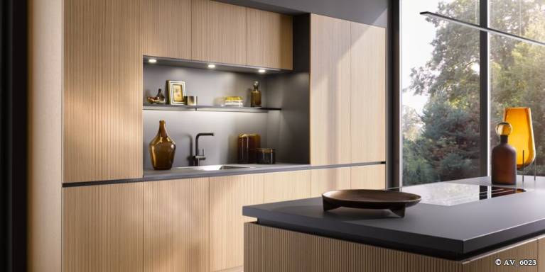 Die Naturholzküche „black line“ fasziniert durch offene und geschlossene Gestaltungselemente und besticht durch eine praktische Inneneinteilung der Laden.